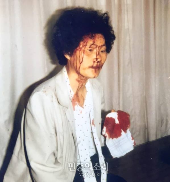 (사진 : 시위 도중 경찰에 맞아 피 흘리는 김길자님)