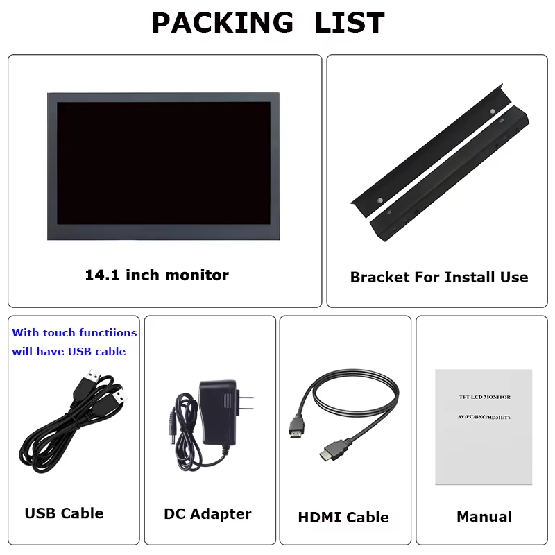 | 14.1 인치 16:9 산업용 모니터의 사양 | |||||||||