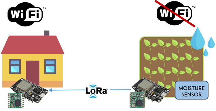 들판의 습도를 측정하고 싶다고 가정해 보겠습니다. 집에서 그리 멀지 않지만 Wi-Fi가 제공되지 않을 가능성이 큽니다. 따라서 ESP32와 습도 센서가 있는 센서 노드를 빌드하여 LoRa를 사용하여 하루에 한두 번 다른 ESP32로 습도 판독값을 보낼 수 있습니다.