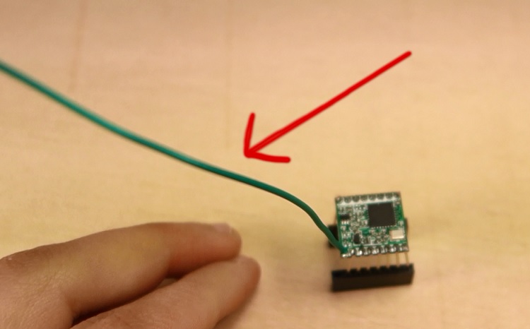 모듈의 경우 트랜시버의 ANA 핀에 직접 납땜된 86.3mm 와이어를 사용해야 합니다. 적절한 안테나를 사용하면 통신 범위가 확장됩니다.