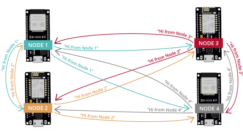 ESP32 및 ESP8266 NodeMCU 보드로 메시 네트워크를 구축하기 위해 ESP-MESH 네트워킹 프로토콜을 사용하는 방법을 알아보세요. ESP-MESH를 사용하면 여러 장치(노드)가 단일 무선 LAN(Local Area Network)에서 서로 통신할 수 있습니다. ESP32 및 ESP8266 보드에서 지원됩니다. 이 가이드에서는 Arduino 코어를 사용하여 ESP-MESH를 시작하는 방법을 보여드리겠습니다.