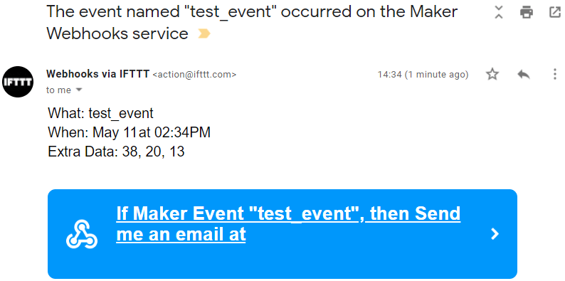 테스트 요청에 입력한 데이터가 포함된 이메일을 받았다면 Applet이 예상대로 작동하고 있다는 의미입니다. 이제 ESP32를 프로그래밍하여 센서 판독값과 함께 IFTTT 서비스에 HTTP POST 요청을 보내야 합니다.